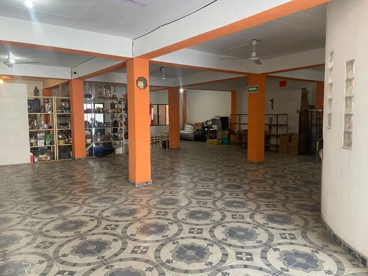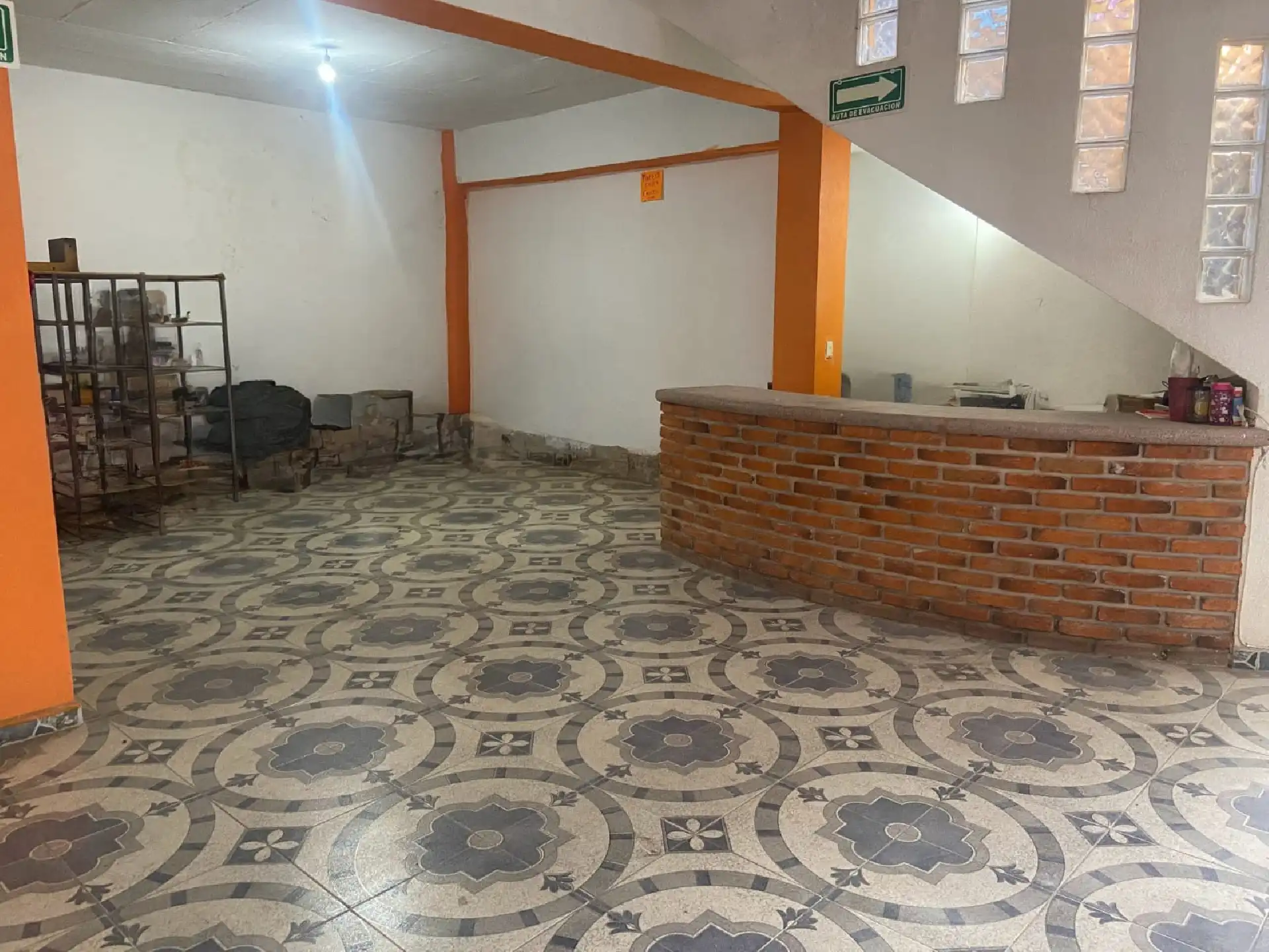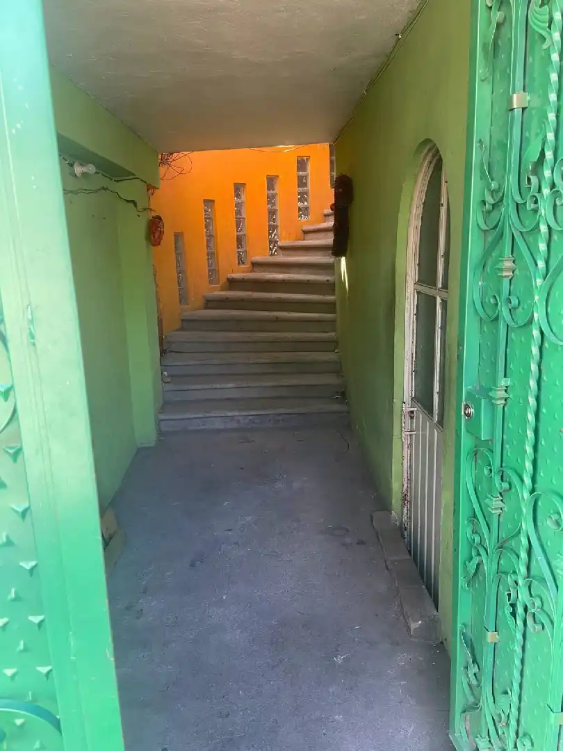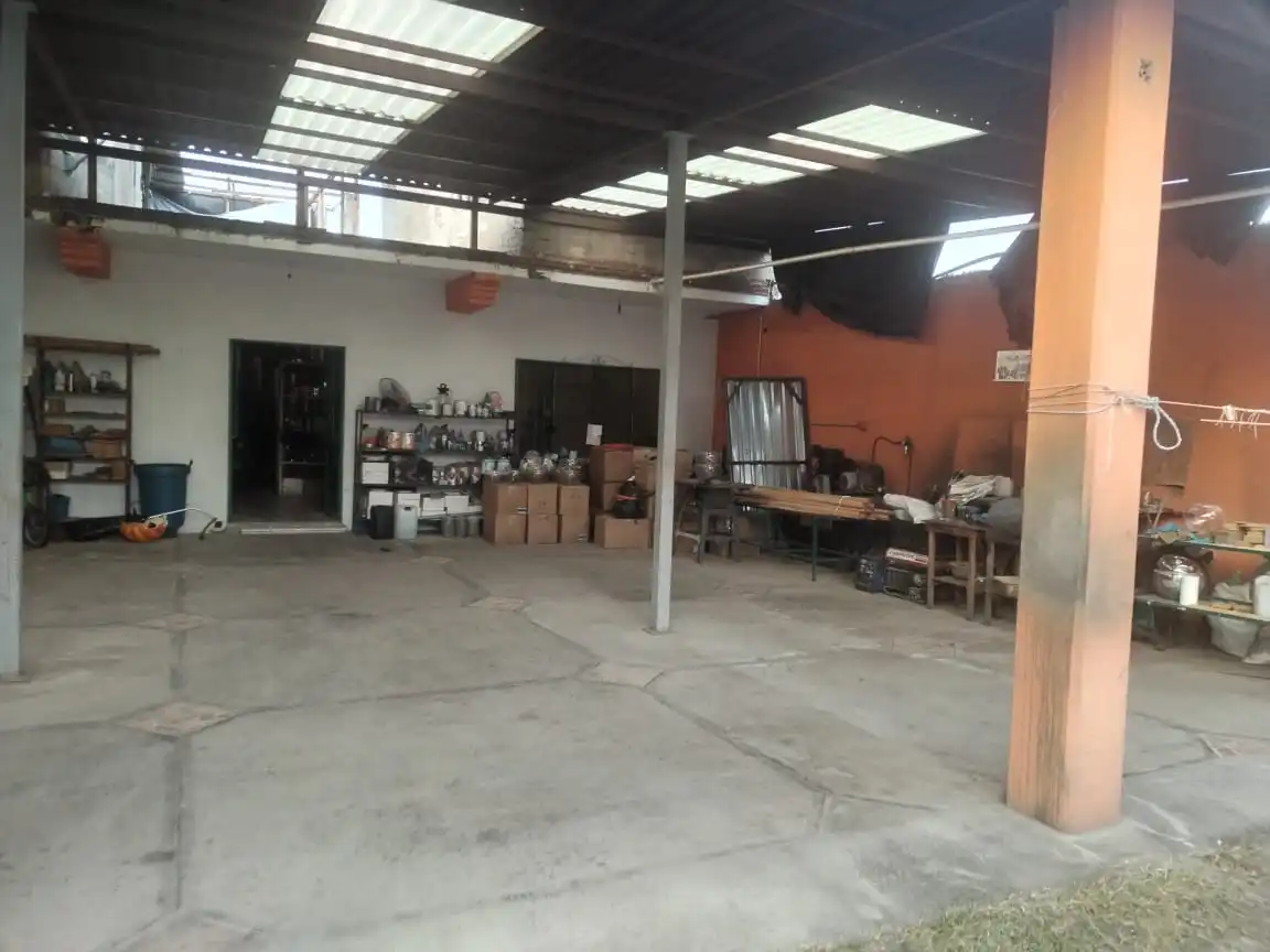 Consta de una bodega enorme con techos altos, terraza, jardín y una cocina pequeña, en la otra sección está un departamento independiente en pb de una recámara, baño y cocina, en la planta alta obra negra para un departamento más grande. La propiedad tiene 21 m de frente por 23 m de fondo.