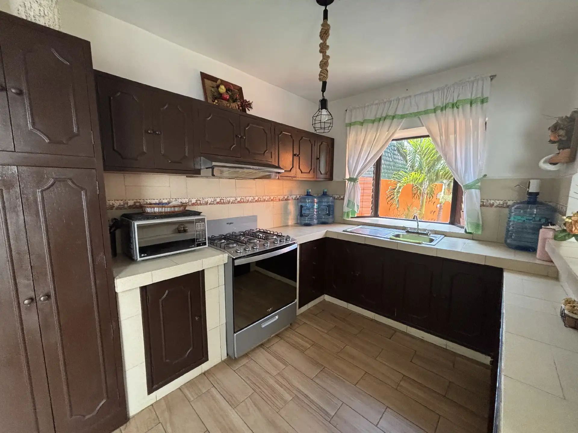 Piso 1: terraza techada, sala comedor, cocina equipada, sala de TV, medio baño de visitas.